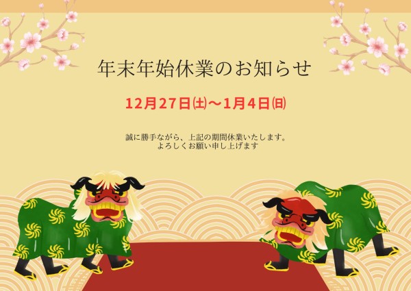 年末年始休業のお知らせ